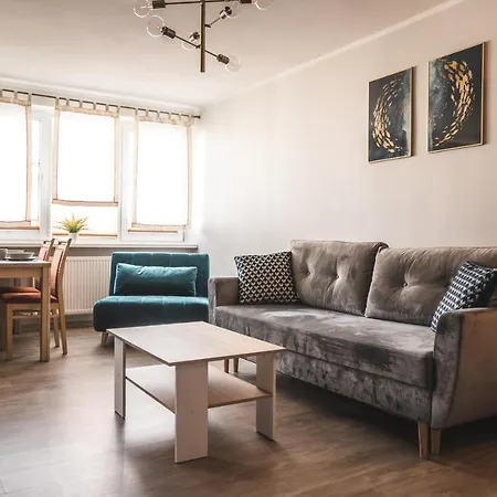 Una pequeña cocina está equipada con horno de microondas, nevera y utensilios de cocina. El restaurante Fregata, situado a poca distancia del apartamento, sirve comida polaca. Este apartamento de 40 m^2 está a unos cuantos pasos de la parada de autobuses Zwyciezcow.